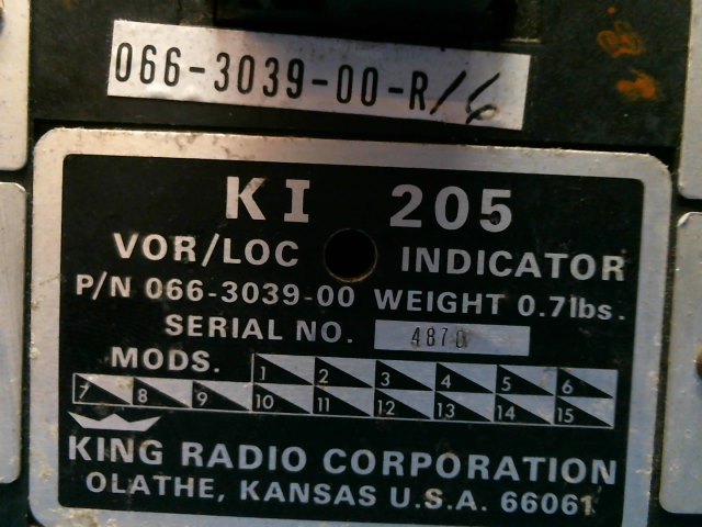P/N: 066-3039-00  Alt P/N: KI205  S/N: 4871
