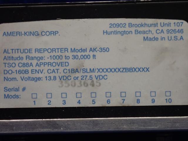 P/N: AK-350  Alt P/N: AK350  S/N: 3503645