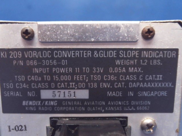 P/N: 066-3056-01  Alt P/N: KI-209  S/N: 57151