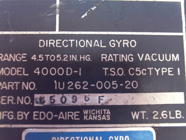 MFR/Title: EDO Corp - DIRECTIONAL GYRO MODEL 4000D-1 AP Output (Cracked see photos)