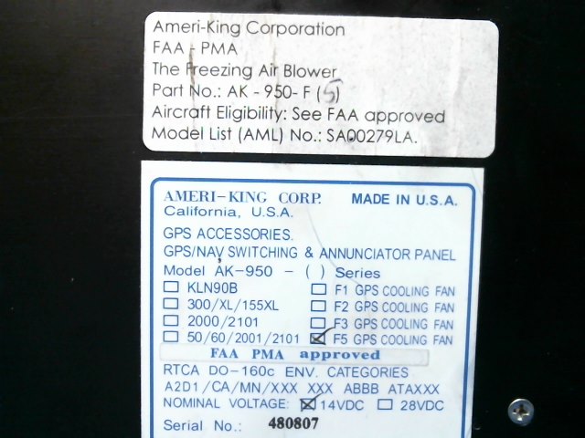 P/N: AK-950-F5  S/N: 480807