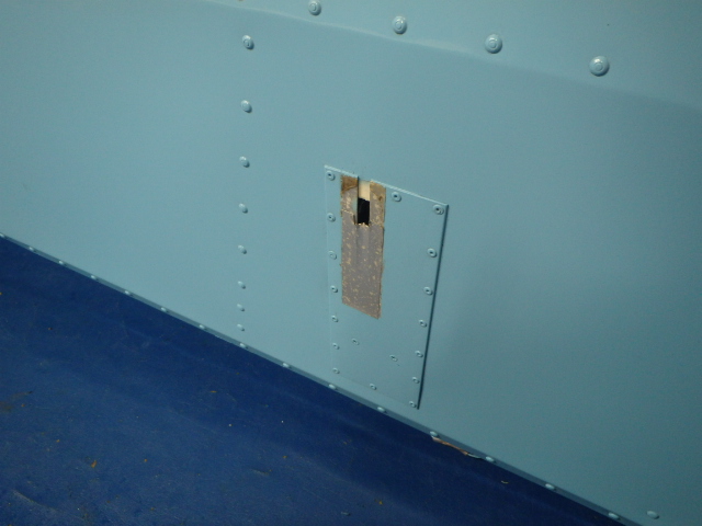 Has a motor for what appears to be the aileron trim tab with a patch. Does not have trim tab