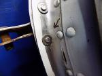 Details: Structure cracked at rivet on upper hinge area. See photos.