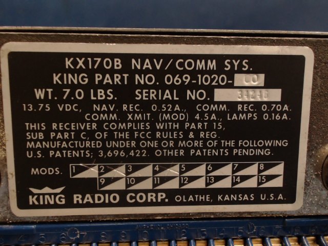 P/N: 069-1020-00  Alt P/N: KX 170B  S/N: 34246