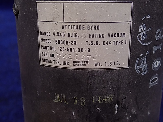 MFR/Title: Sigma-Tek - ATTITUDE GYRO (LENS CLOUDY)