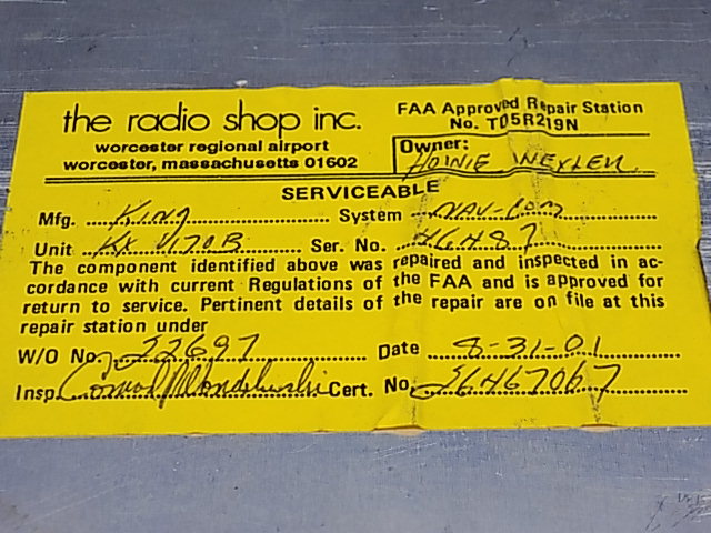 MFR/Title: King - KX170B Nav/Comm AS-IS (INOP)