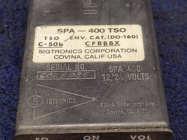 P/N: SPA-400  Alt P/N: SPA400  S/N: 6028035