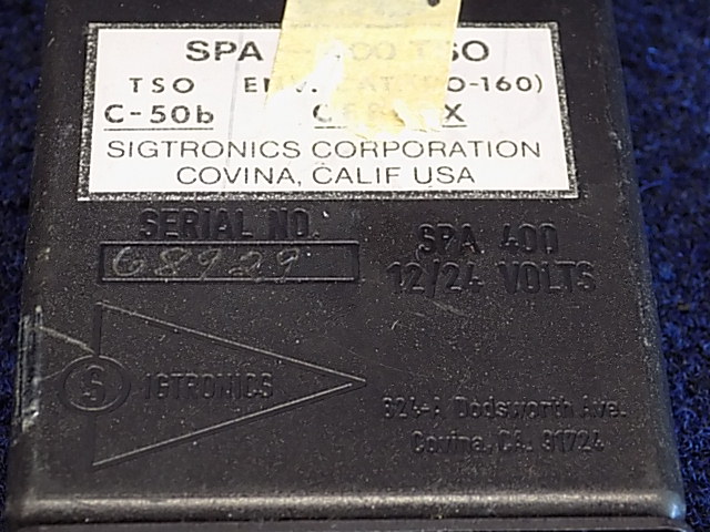 P/N: SPA-400  Alt P/N: SPA400  S/N: 68929