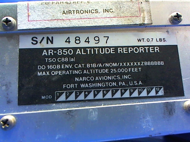 MFR/Title: Narco - Altitude Reporter AR 850 - 25 pin w/ Tray