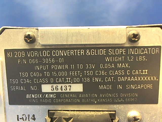 P/N: 066-3056-01  Alt P/N: KI-209  S/N: 56437